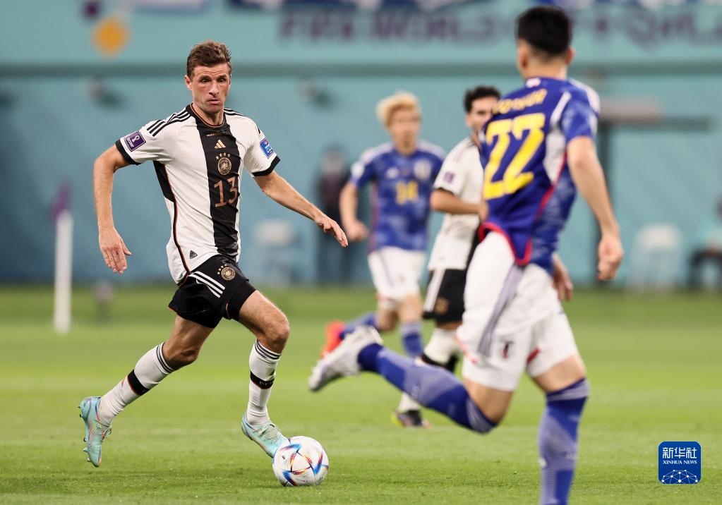 11月23日,德國隊球員托馬斯·穆勒(左)在比賽中進攻。新華社記者 蘭紅光 攝