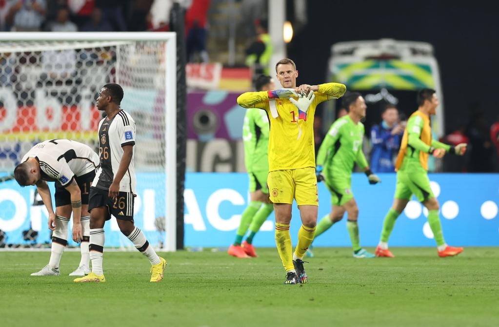 11月23日,德國(guó)隊(duì)諾伊爾(前)在比賽后。新華社記者潘昱龍攝