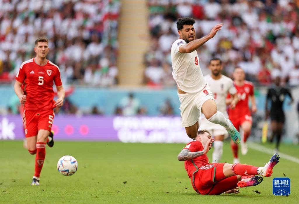 當(dāng)日,在卡塔爾多哈艾哈邁德·本·阿里體育場(chǎng)進(jìn)行的2022卡塔爾世界杯足球賽B組比賽中,伊朗隊(duì)以2比0戰(zhàn)勝威爾士隊(duì)。
