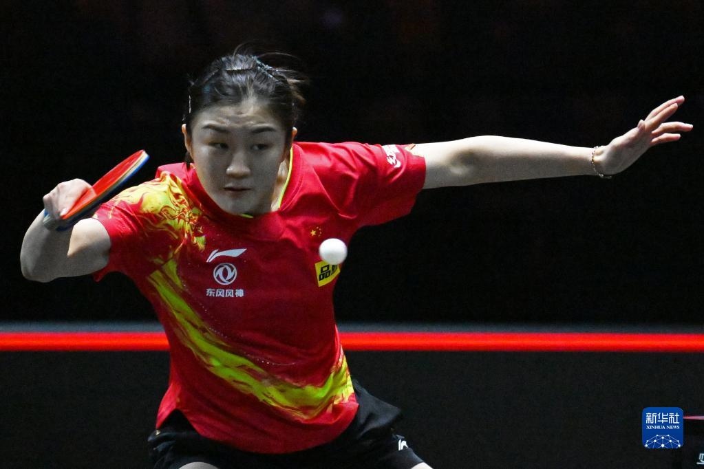 3月13日,陳夢(mèng)在比賽中回球。新華社發(fā)(鄧智煒攝)