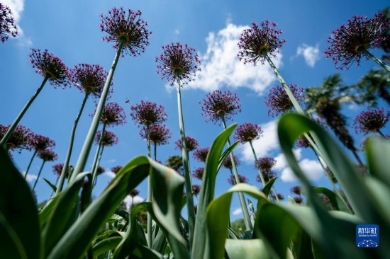 近日,昆明植物園中烏全球蔥園(昆明中心)內(nèi)的近十個品種、6000余株觀賞蔥屬植物逐漸迎來盛花期,吸引游客前來觀光。據(jù)了解,蔥屬植物具有重要的經(jīng)濟利用價值,許多種類被人類作為食用、藥用和觀賞植物進行了長期的栽培利用。