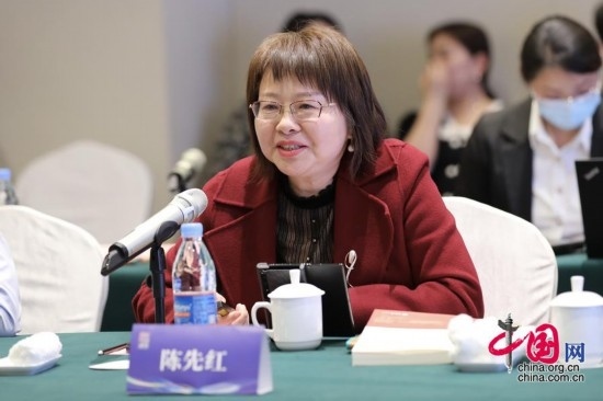 華中科技大學(xué)中國故事創(chuàng)意傳播研究院院長(zhǎng)陳先紅作主題演講。中國網(wǎng) 夢(mèng)恬 攝