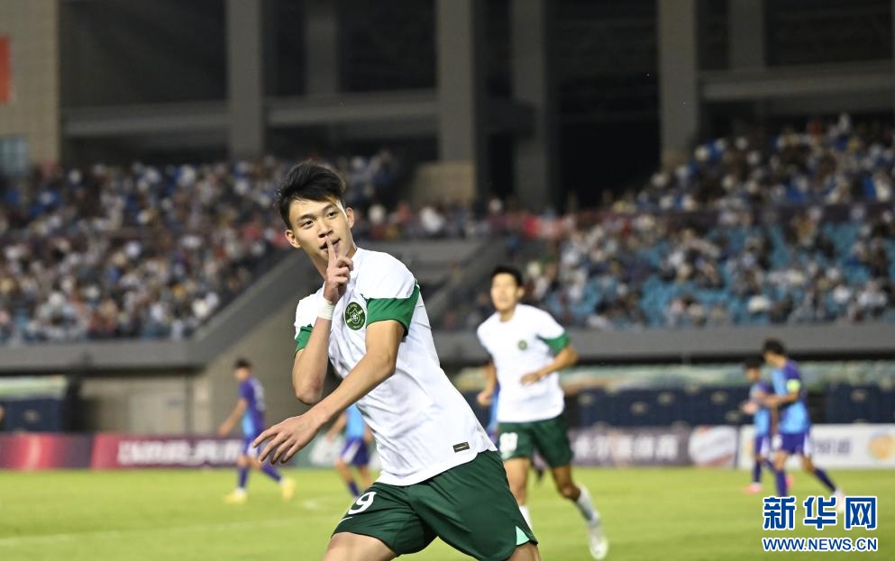 ??6月15日,浙江俱樂部U21隊球員王鈺棟在比賽中慶祝進(jìn)球。
