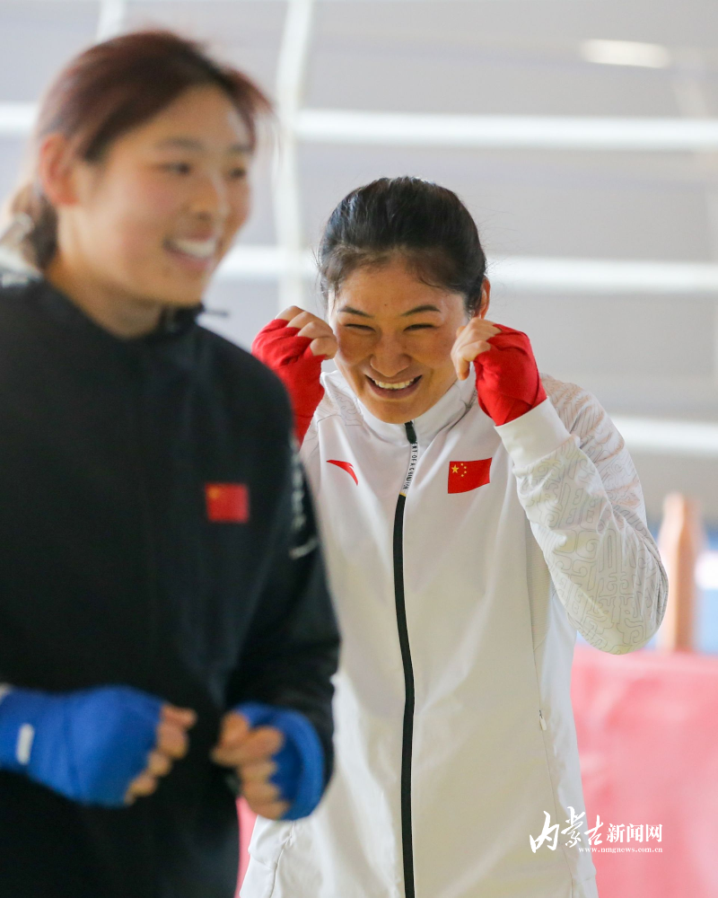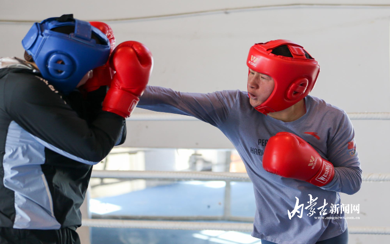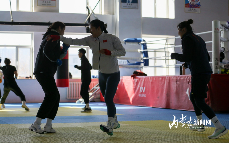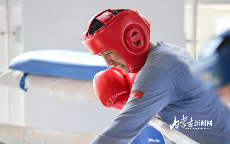 當(dāng)日,記者在拳擊館內(nèi)看到,在訓(xùn)練中李倩腳步輕盈,汗珠在額頭滑落。她戴上拳套,走向沙袋,一記記重拳砸出,發(fā)出沉悶的“砰”聲。內(nèi)蒙古女子拳擊隊的數(shù)十名拳手正在同時訓(xùn)練,沙袋晃動,呼吸急促,空氣中彌漫著汗水與堅持的味道?!胺朗?,腳下要穩(wěn)!”內(nèi)蒙古拳擊隊總教練哈達巴特爾的聲音在空間回蕩。李倩的訓(xùn)練格外嚴(yán)格。除了常規(guī)力量訓(xùn)練、反應(yīng)訓(xùn)練和體能循環(huán),她還要進行一對一的與男拳手的實戰(zhàn)模擬,幾次交鋒下來,氣息都愈發(fā)急促。但李倩沒有退縮,反而越打越穩(wěn),腳步靈活,出拳干凈利落。