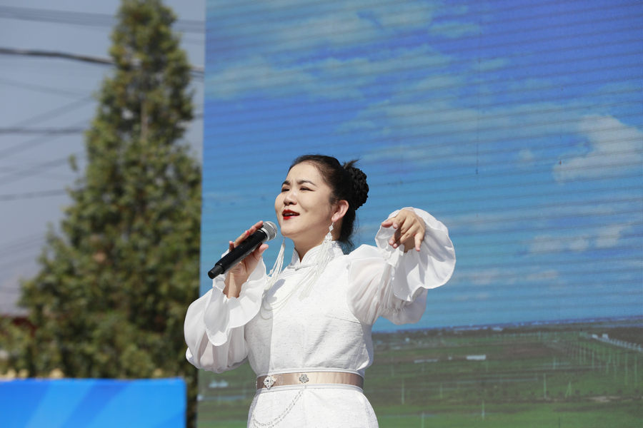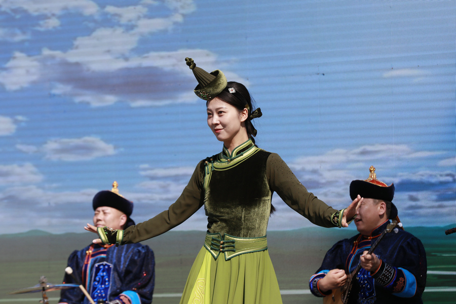 烏蘭牧騎隊(duì)員現(xiàn)場表演 北疆新聞?dòng)浾?張楊攝影