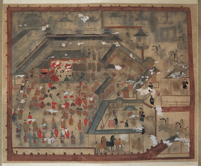 他,眼神堅(jiān)定,峨冠博帶,身著華服位于畫(huà)面中央,周圍有疾馳的駿馬、彪悍的武士、精彩奇絕的樂(lè)舞百戲……這些畫(huà)面看上去遙遠(yuǎn)而陌生。