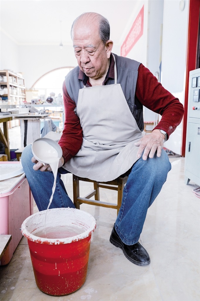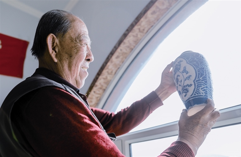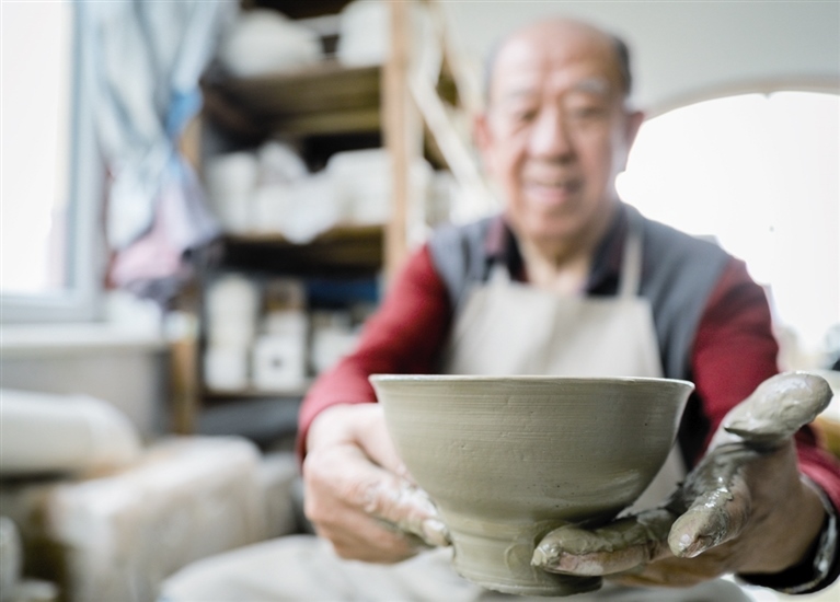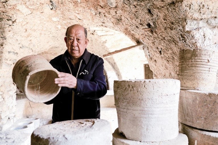 隨后,他走進(jìn)“饅頭窯”旁邊的一口窯洞,這是當(dāng)時(shí)張家的一間手工作坊,揉泥、拉坯、上釉等一系列制作陶瓷的工序都是在這里完成。“我就出生在這個(gè)村子,已經(jīng)是張家瓷藝的第九代傳人了。作為中國(guó)磁州窯譜系,清水河黑礬溝瓷藝生產(chǎn)歷史至少已有800年?!标P(guān)于這項(xiàng)非遺的歷史故事,張選老人向記者娓娓道來(lái):大約400年前,他們張家走西口從山西來(lái)到清水河謀生,當(dāng)時(shí)清水河黑礬溝有一家姓杜的人家做陶瓷營(yíng)生,張家的先人在杜家打工,大概這樣打工做了三輩人吧,杜家忽然不做了,搬離了黑礬溝,他們張家便把杜家的產(chǎn)業(yè)買(mǎi)了下來(lái)繼續(xù)做?!澳莻€(gè)時(shí)候黑礬溝生產(chǎn)的瓷器都與人們生活息息相關(guān),比如腌菜缸、水甕、碗盤(pán)等,一個(gè)家庭手工作坊一天能生產(chǎn)500個(gè)碗呢,生意很好,人們靠做這個(gè)營(yíng)生也過(guò)上了不錯(cuò)的生活?!睆堖x回憶著清水河瓷藝鼎盛時(shí)期的場(chǎng)景。上個(gè)世紀(jì)70年代,由于交通、技術(shù)等原因,黑礬溝燃燒了幾百年的窯火熄滅,傳統(tǒng)“饅頭窯”被正式廢棄,轉(zhuǎn)移到窯溝鄉(xiāng)后手工作坊變成了機(jī)械化生產(chǎn),這也讓清水河的陶瓷名聲大噪。當(dāng)時(shí),在窯溝鄉(xiāng)一帶,從事陶瓷生產(chǎn)的有近萬(wàn)人,陶瓷業(yè)成為清水河支柱產(chǎn)業(yè)。