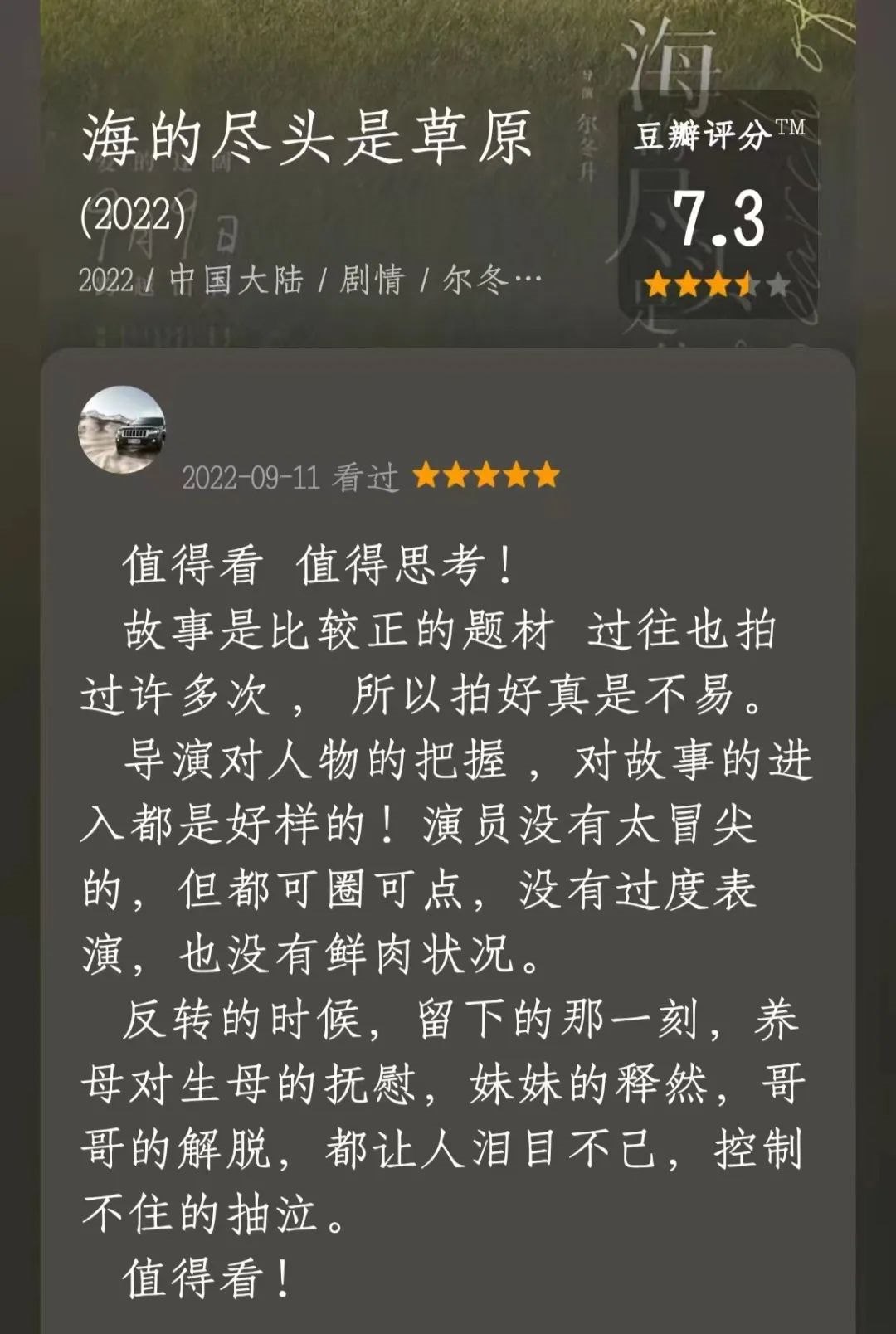 9月9日《海的盡頭是草原》溫情上映,豆瓣評(píng)分一度高達(dá)7.9分!