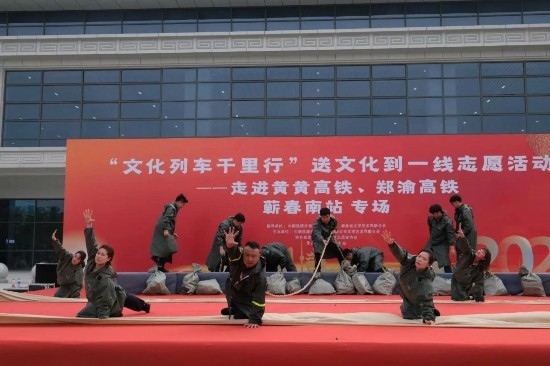 在黃黃高鐵蘄春南站、鄭渝高鐵興山綜合維修車間、浩吉鐵路襄州運(yùn)營維修段舉行的三場(chǎng)活動(dòng)亦是精彩紛呈。由牛悅敏、候孟陽、白石洋、李祥東、白愛潔、徐寧、王曉萍、周政輝、胡啟文、朵蘭、王瑛、蔣輝、以及幾十位武漢局集團(tuán)公司文藝志愿者的精彩節(jié)目輪番上演。優(yōu)美動(dòng)聽的歌舞、經(jīng)典優(yōu)美的京劇、詼諧幽默的大鼓、驚險(xiǎn)刺激的雜技,還有《朱家河上的守堤人》等情景劇感人至深,活動(dòng)現(xiàn)場(chǎng)濃厚的文藝氛圍感染著每一位觀眾。本次活動(dòng)惠及鐵路沿線車務(wù)、機(jī)務(wù)、工務(wù)、供電、電務(wù)等系統(tǒng)職工和高鐵列車旅客3500余人。