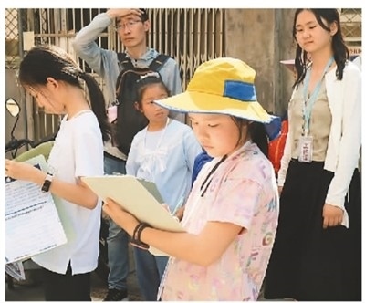 在北京,參與以“歷史文化街區(qū)保護(hù)更新與利用”為主題的青少年城市探索班的學(xué)生在做記錄。張仕瀟攝