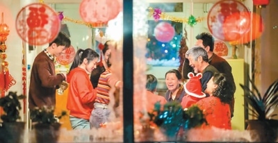 春節(jié)是集除舊布新、拜神祭祖、祈福辟邪、親朋團圓、歡慶娛樂為一體的民俗大節(jié),也最具向心力。正因如此,在影視作品中,春節(jié)總是營造情境、表達情感的最佳選擇。在電視劇《以家人之名》中,除夕夜三兄妹和兩位老爸一邊看春晚,一邊吃團圓飯,期間電話不斷,親友們紛紛電話拜年。妹妹還提醒兩個哥哥別忘記給外婆和二姨打電話拜年。其實,這其樂融融的一家人并沒有血緣關系,而這個“不是一家人,勝似一家人”的溫馨場面,深化了暖心的青春成長故事,傳遞出超越血緣的人間真情與大愛。除舊迎新之際,人們不免產生更為深刻透徹的生命感懷,也期盼來年有個好運勢、好光景。