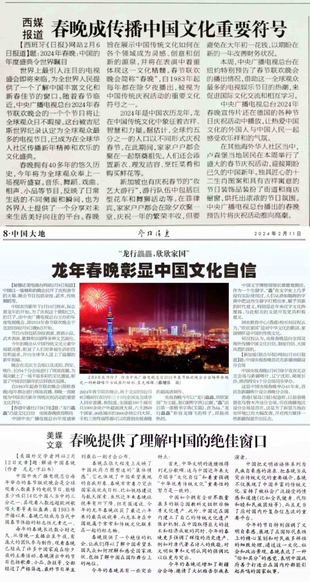 《參考消息》援引西班牙媒體評(píng)論稱(chēng),總臺(tái)龍年春晚為全世界人民提供了一個(gè)了解中國(guó)豐富文化的窗口,它展示中國(guó)傳統(tǒng)文化如何在各個(gè)領(lǐng)域成為靈感、創(chuàng)意和創(chuàng)新的源泉,并在音樂(lè)、舞蹈、戲曲等節(jié)目中體現(xiàn)傳統(tǒng)文化的精髓。秘魯、新加坡等媒體報(bào)道稱(chēng),龍年春晚彰顯了中國(guó)的文化自信。而美國(guó)《外交學(xué)者》網(wǎng)站署名文章認(rèn)為,龍年春晚為世界提供了理解中國(guó)的絕佳窗口。海外媒體的這些報(bào)道,不約而同地使用了“文化符號(hào)”“標(biāo)志性元素”等詞匯,并從促進(jìn)文化理解、推動(dòng)文化交流等角度對(duì)總臺(tái)春晚的海外影響力進(jìn)行解讀。