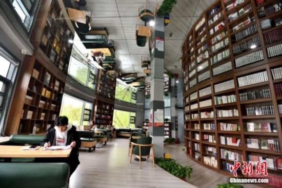 資料圖:世界讀書(shū)日,山西太原市民在太原文瀛城市書(shū)房閱讀書(shū)籍,品味“書(shū)香”。中新社記者 韋亮 攝