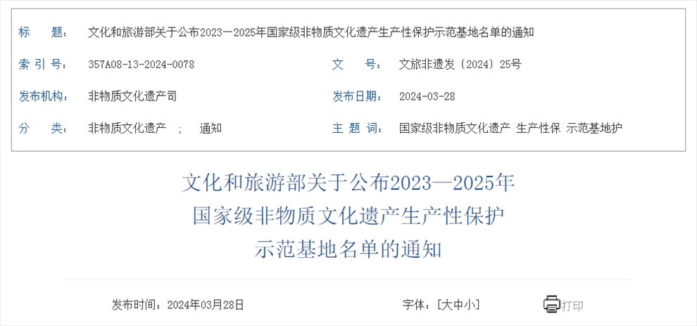 記者3月28日從文化和旅游部獲悉,在各地推薦的基礎(chǔ)上,經(jīng)過(guò)專家評(píng)審、實(shí)地考察和社會(huì)公示等程序,文化和旅游部近日認(rèn)定99家企業(yè)和單位為2023—2025年國(guó)家級(jí)非物質(zhì)文化遺產(chǎn)生產(chǎn)性保護(hù)示范基地。
