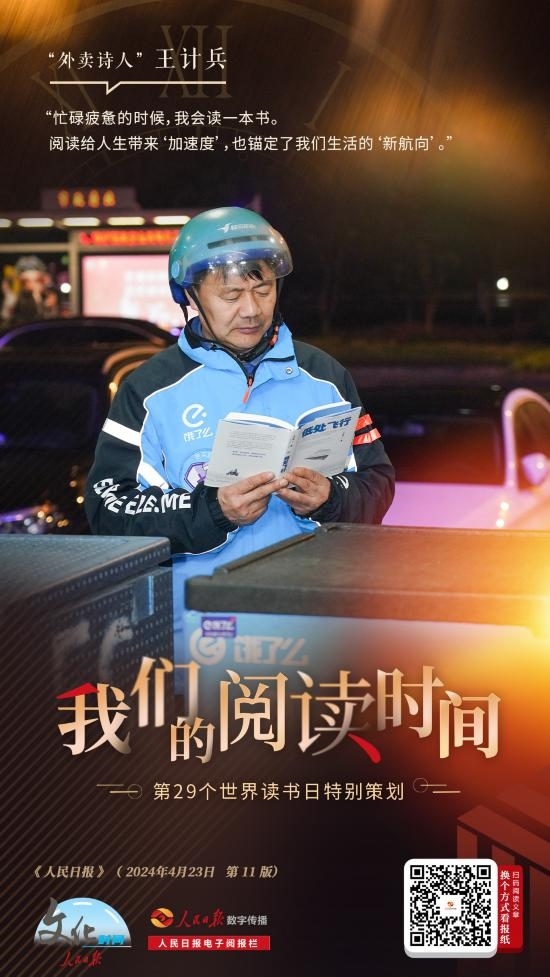 “我的外賣箱里總會(huì)放一本書,在等外賣的間隙或者訂單空閑的時(shí)候看,現(xiàn)在主要在手機(jī)上閱讀?!比缃?,王計(jì)兵已創(chuàng)作5000多首詩歌,出版3本詩集,還在進(jìn)行非虛構(gòu)寫作。他說:“閱讀給我的人生帶來‘加速度’,為忙碌的生活錨定方向感。”