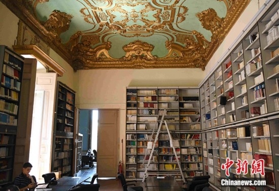 那不勒斯東方大學(xué)圖書館也位于科里利亞諾宮,擁有大量中文書籍和資料。在巴里奧教授帶領(lǐng)下,記者來到圖書館的地下庫房,看到了圖書館的中文新書,其中包括鐵凝、劉震云等中國現(xiàn)代作家的作品集,也有不少魯迅研究書籍。