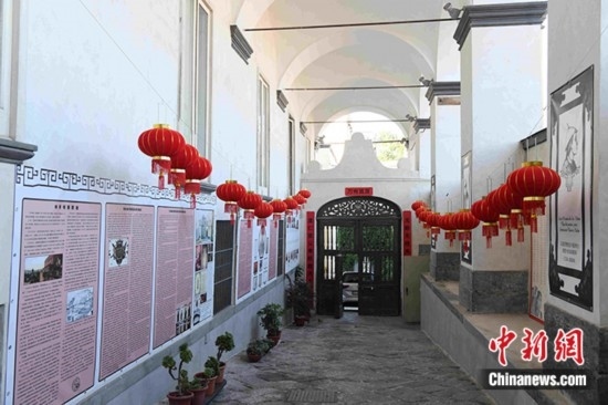 圖為6月17日拍攝的“中國學(xué)院”舊址,門廊兩側(cè)都懸掛著中式紅燈籠,有馬國賢和那不勒斯東方大學(xué)變遷史的展覽。 中新社記者 李洋 攝