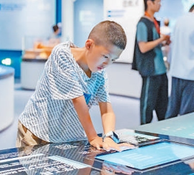 陜西歷史博物館秦漢館,游客在體驗(yàn)互動(dòng)裝置。施 覺(jué)攝