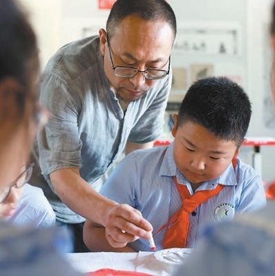學生跟隨非遺傳承人學習體驗拓印技藝。楊 晨攝(人民視覺)