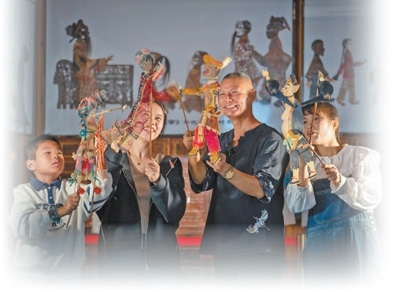 安徽宣城宣州區(qū)水東鎮(zhèn),游客正在體驗(yàn)皮影戲。李曉紅攝(影像中國(guó))
