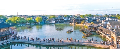 江蘇昆山錦溪古鎮(zhèn)景區(qū)游客眾多。楊惠新攝(影像中國(guó))