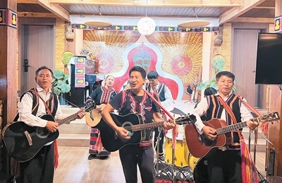 在云南省瀾滄拉祜族自治縣,拉祜族房東扎努的民宿在國慶節(jié)假期迎來滿房。今年4月,扎努改造自家老房子,把民族音樂與民宿相結(jié)合,開了一家音樂民宿——拉祜音宿?!袄镒迨悄芨枭莆璧拿褡濉N蚁矚g與人交流,喜歡鄉(xiāng)村風光和家鄉(xiāng)氣候,所以選擇回鄉(xiāng)開民宿?!弊鳛榉繓|,扎努常常帶游客一起唱歌跳舞,表演他創(chuàng)作的《我在瀾滄等你》《快樂拉祜》等歌曲,并向他們介紹拉祜族的民族歷史和文化。