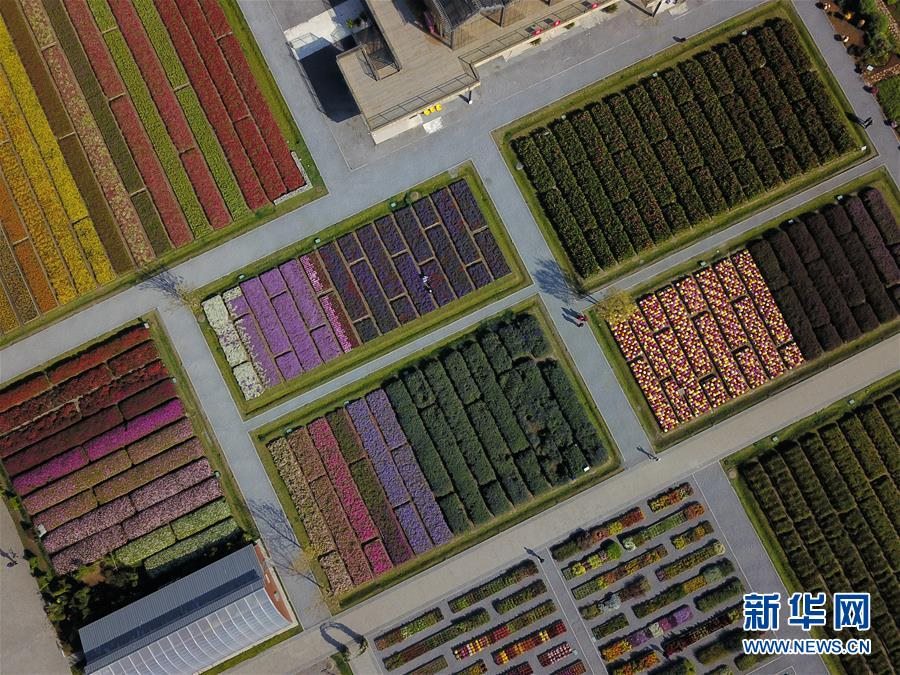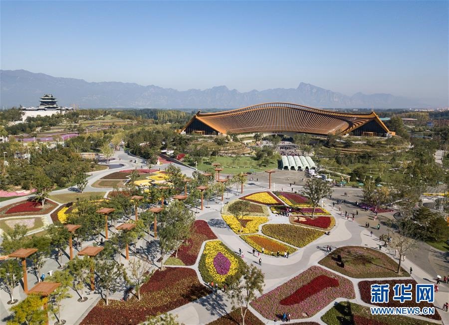 這是北京世園會園藝小鎮(zhèn)(10月7日無人機拍攝)。