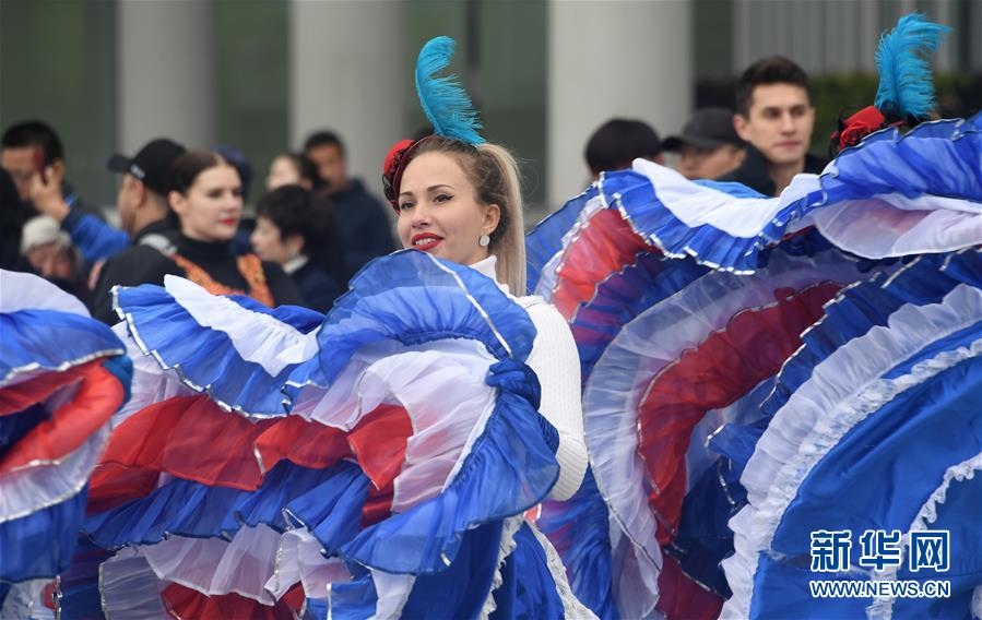 演員在北京世園會園區(qū)表演(4月29日攝)。