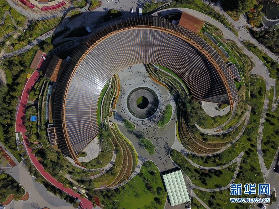 這是北京世園會中國館(10月7日無人機拍攝)。