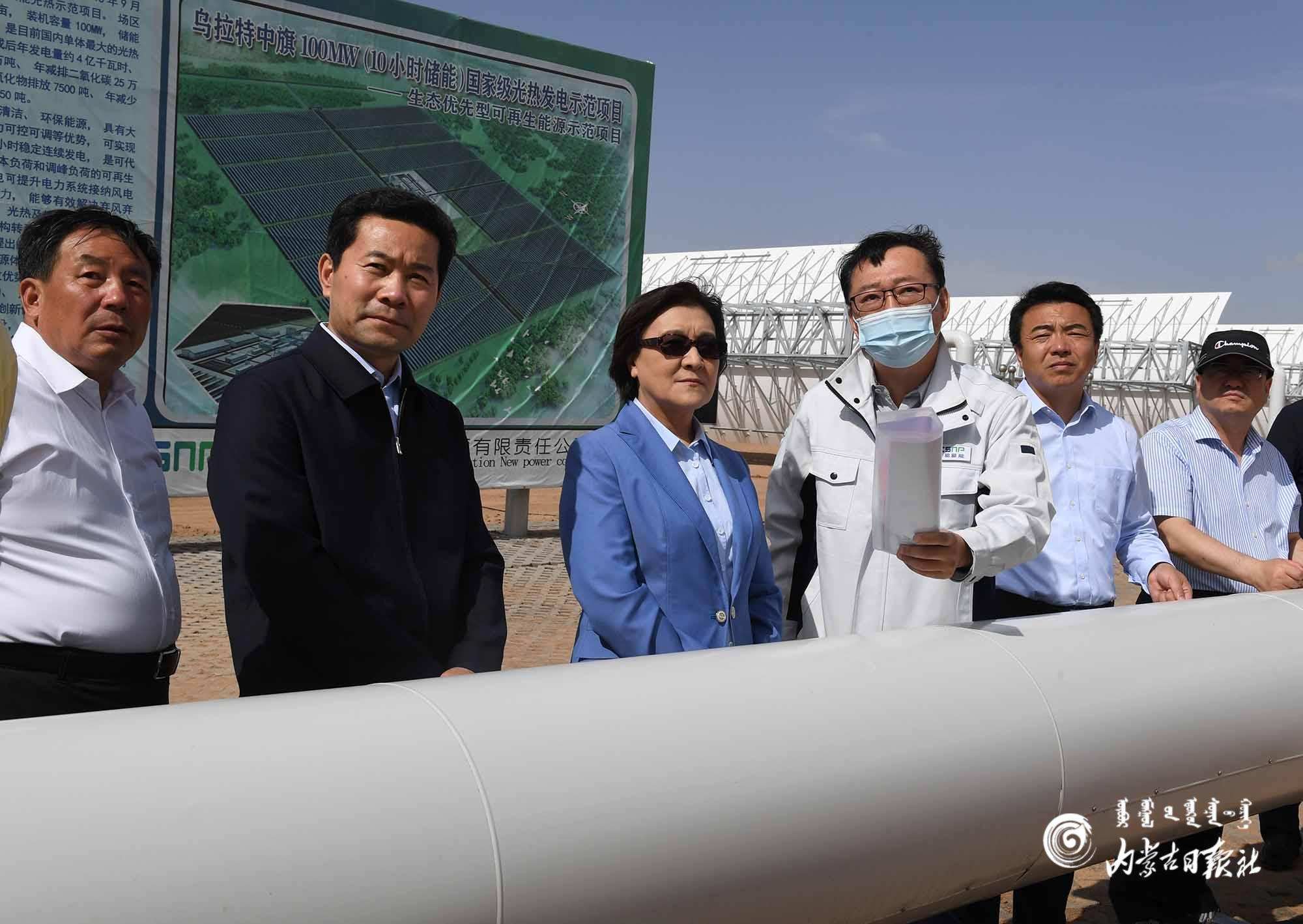 6月8日,自治區(qū)黨委副書(shū)記、自治區(qū)主席布小林在巴彥淖爾市烏拉特中旗中核龍騰100兆瓦(10小時(shí)儲(chǔ)能)光熱發(fā)電示范項(xiàng)目施工現(xiàn)場(chǎng)調(diào)研,了解項(xiàng)目建設(shè)進(jìn)度。內(nèi)蒙古日?qǐng)?bào)社融媒體記者 韓卿立攝