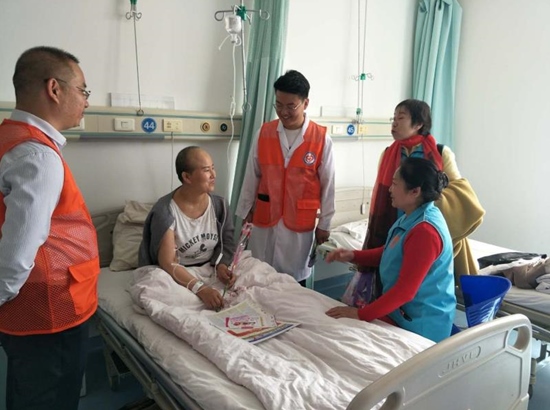 每年舉辦關(guān)愛白血病患兒活動(dòng),通過與內(nèi)蒙古紅十字會(huì)等組織合作,深入兒科病房為每名白血病患兒送上2000元的慰問金及價(jià)值500元的慰問品。不僅如此,醫(yī)務(wù)社工辦公室還結(jié)合臨床與病友的需求開展溫馨關(guān)愛活動(dòng)。如:走進(jìn)放療科、腫瘤內(nèi)科病房,設(shè)立流動(dòng)圖書車;開展患者陪護(hù)服務(wù),減少患者對(duì)醫(yī)院的恐懼、孤獨(dú)感;向有需要的患者及家屬介紹醫(yī)保咨詢、慈善救助、遺體捐獻(xiàn)和家屬住宿、生活服務(wù)等有關(guān)途徑,同時(shí)注意發(fā)現(xiàn)患者對(duì)醫(yī)療服務(wù)的隱性需求,及時(shí)向醫(yī)護(hù)人員反映。