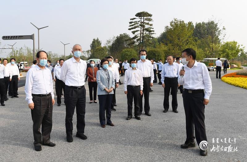 9月26日,自治區(qū)黨政代表團在北京對接扶貧協(xié)作并學(xué)習(xí)考察。中共中央政治局委員、北京市委書記蔡奇,北京市委副書記、市長陳吉寧,同自治區(qū)黨委書記、人大常委會主任石泰峰,自治區(qū)黨委副書記、自治區(qū)主席布小林,考察北京城市綠心森林公園。內(nèi)蒙古日報記者 袁永紅 攝