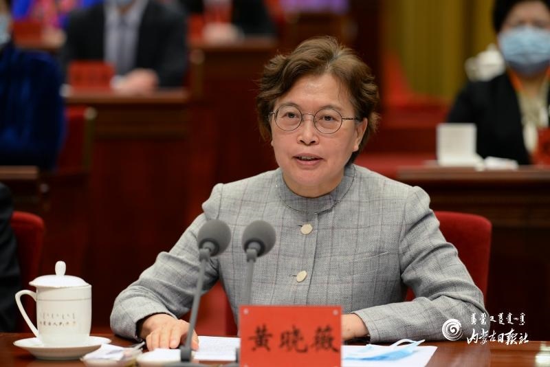 9月27日上午,全國婦聯(lián)黨組書記、副主席、書記處第一書記黃曉薇,出席內(nèi)蒙古自治區(qū)婦女第十二次代表大會并講話。 內(nèi)蒙古日報社融媒體記者 袁永紅 攝