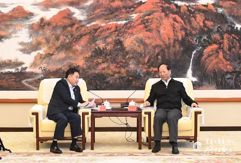 9月4日,自治區(qū)黨委書記、人大常委會(huì)主任石泰峰在呼和浩特會(huì)見協(xié)鑫集團(tuán)董事長(zhǎng)朱共山。內(nèi)蒙古日?qǐng)?bào)社融媒體記者袁永紅攝