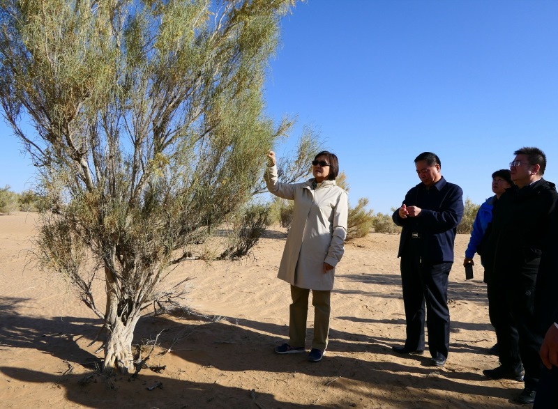 阿拉善盟林業(yè)生態(tài)建設(shè)主要以發(fā)展梭梭林種植為主,梭梭林接種蓯蓉、鎖陽,實(shí)現(xiàn)生態(tài)效益與經(jīng)濟(jì)效益有機(jī)統(tǒng)一。在塔木素萬畝天然梭梭林基地,布小林仔細(xì)察看梭梭林生長情況,詳細(xì)了解梭梭接種蓯蓉、鎖陽給當(dāng)?shù)厝罕妿淼氖找?。她?qiáng)調(diào),阿拉善沙漠沙地面積廣,生態(tài)脆弱,加強(qiáng)生態(tài)保護(hù)建設(shè)意義重大。要牢固樹立綠水青山就是金山銀山的理念,充分發(fā)揮梭梭等沙生植物資源優(yōu)勢,不斷擴(kuò)大林業(yè)生態(tài)建設(shè)面積,推進(jìn)生態(tài)保護(hù)建設(shè)的同時(shí)培育壯大綠色生態(tài)產(chǎn)業(yè),帶動農(nóng)牧民增收致富,實(shí)現(xiàn)生產(chǎn)發(fā)展、生活富裕、生態(tài)良好有機(jī)統(tǒng)一,為筑牢祖國北疆生態(tài)安全屏障作出新的更大貢獻(xiàn)。
