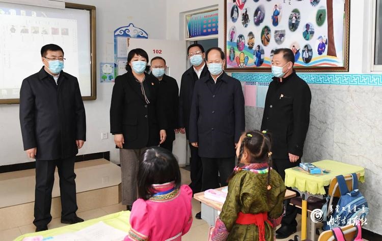 11月9日,自治區(qū)黨委書記、人大常委會主任石泰峰來到錫林浩特市民族小學了解學生學習情況。內(nèi)蒙古日報記者 袁永紅攝