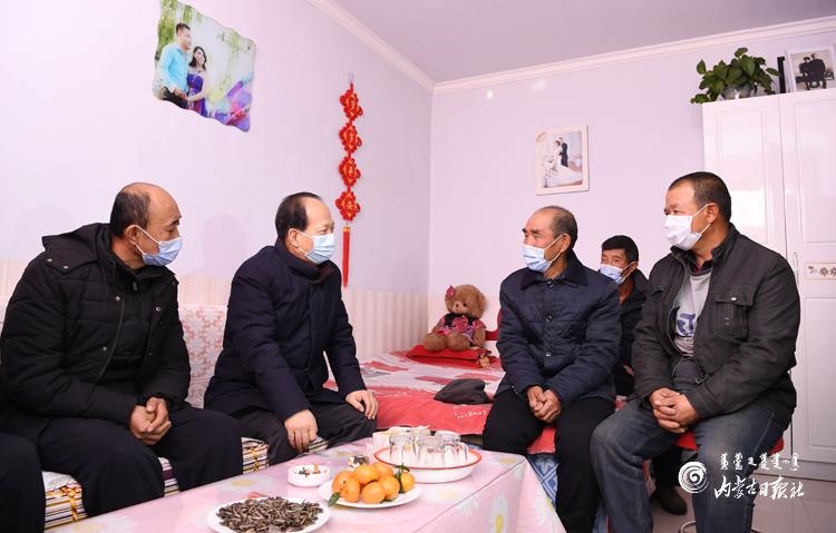 屋外白雪皚皚,屋內(nèi)爐火熊熊。石泰峰首先來到庫(kù)倫圖村脫貧戶連縻拴家,與老倆口親切交談,深入了解飲水、住房、健康等生產(chǎn)生活狀況,與他們一起細(xì)算收入賬,詢問他們對(duì)幫扶工作的滿意度,鼓勵(lì)他們堅(jiān)定信心,在政策幫扶下勤勞致富。隨后,石泰峰驅(qū)車來到六道溝村,在脫貧戶孟忠忠家,與孟忠忠、胡金柱、王鎖林、韓向林、韓金龍等貧困群眾圍坐在一起嘮起家常,詳細(xì)了解“兩不愁三保障”及飲水安全、產(chǎn)業(yè)發(fā)展等情況。得知他們雖然都是因病、因殘致貧,但生產(chǎn)生活都有保障,而且不等不靠、自我發(fā)展的心勁兒很足,石泰峰說,脫貧路上一個(gè)都不能少、一戶都不能落,今年是脫貧攻堅(jiān)戰(zhàn)最后一年,也是全面建成小康社會(huì)收官之年,看到你們不但脫了貧,而且信心滿滿,很有志氣和骨氣,我很放心。幸福是奮斗出來的,希望大家在政策幫扶下繼續(xù)奮斗,共同努力脫貧致富過上好日子。石泰峰要求當(dāng)?shù)馗刹恳虻刂埔恕⒕珳?zhǔn)施策,接續(xù)推進(jìn)全面脫貧與鄉(xiāng)村振興有效銜接。