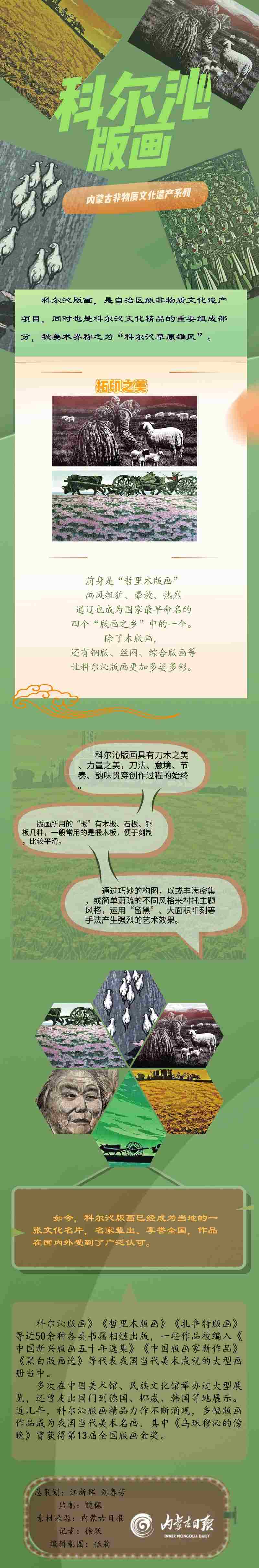 中國木刻版畫已有上千年史,自二十世紀(jì)三十年代起,創(chuàng)作版畫經(jīng)魯迅先生提倡后取得了巨大發(fā)展。內(nèi)蒙古科爾沁版畫繼承發(fā)揚(yáng)中國版畫的精髓,兼收并蓄,創(chuàng)新發(fā)展,以雄渾、純樸、大氣、高雅而著稱,具有鮮明的草原特色。