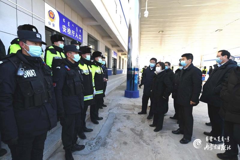 1月5日,自治區(qū)黨委副書記、自治區(qū)主席布小林在興和縣高廟子公安檢查站,看望慰問駐守在這里的執(zhí)勤民警。內蒙古日報記者 韓卿立 攝