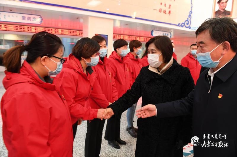 在烏蘭察布市蒙中醫(yī)院,布小林看望慰問了援鄂醫(yī)務工作者。醫(yī)院16名醫(yī)護人員是烏蘭察布市首批支援湖北的逆行者,2020年1月28日奔赴湖北,在荊門市第一人民醫(yī)院、鐘祥市同仁醫(yī)院等醫(yī)療機構奮戰(zhàn)50多天。布小林與他們一一握手表達敬意和感謝。她動情地說,你們在最危急的時刻挻身而出,義無反顧沖向抗疫一線,頑強拼搏,無私奉獻,圓滿完成援鄂任務,每一個人都非常了不起。目前的疫情防控形勢依然嚴峻復雜,希望大家繼續(xù)忠實履行醫(yī)務工作者的神圣職責,同時要加強個人防護。她要求醫(yī)院精心做好內部疫情防控工作,關心關愛醫(yī)護人員的身心健康。