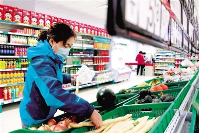 居民在便民超市選購(gòu)新鮮蔬菜。