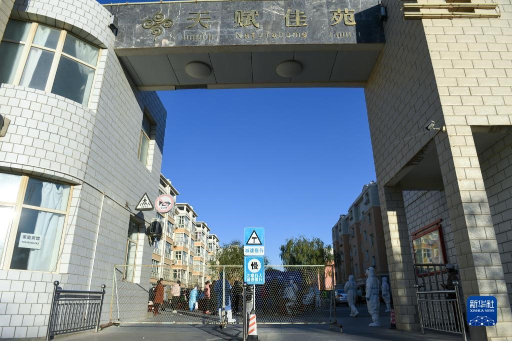 這是10月20日拍攝的因疫情封控的阿拉善盟額濟納旗達來呼布鎮(zhèn)天賦佳苑小區(qū)。新華社記者 貝赫 攝