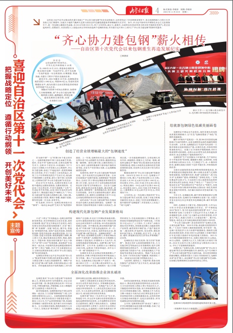 這里是習近平總書記指出的內(nèi)蒙古創(chuàng)造了“齊心協(xié)力建包鋼”歷史佳話的地方;這里曾見證了在黨和國家領導下,來自祖國四面八方的8萬多各族兒女匯聚塞外,以戰(zhàn)天斗地的氣魄和人定勝天的信念在北疆荒漠建成草原鋼城的火紅歲月。如今,在習近平新時代中國特色社會主義思想指引下,新一代包鋼人賡續(xù)紅色血脈,從2016年到2021年,用了五年時間,戰(zhàn)巨虧,渡難關,以前所未有的改革勇力和百折不撓的攻堅勇氣,使企業(yè)起死回生、涅槃重生,從營業(yè)收入上創(chuàng)造出用五年時間再造兩個包鋼的奇跡,在內(nèi)蒙古這片熱土上續(xù)寫了“齊心協(xié)力建包鋼”的新時代篇章。