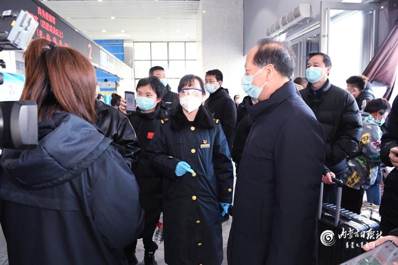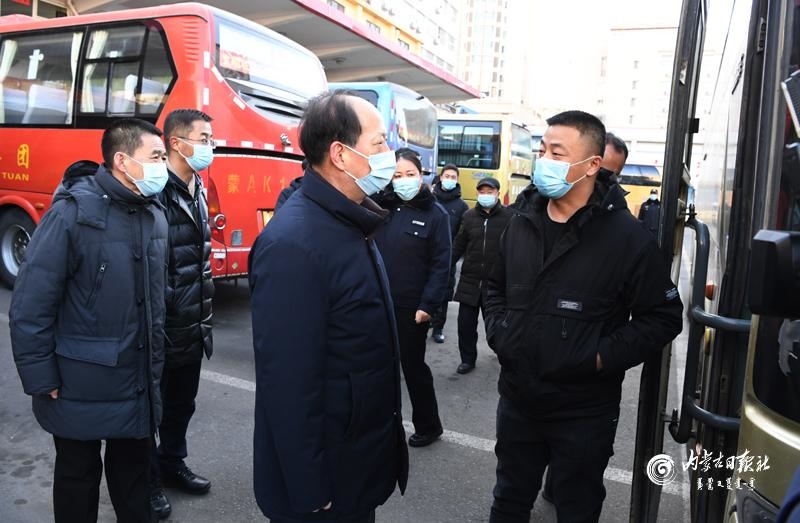節(jié)假日期間人員流動增加,做好疫情防控和交通出行保障非常重要。石泰峰來到呼和浩特火車站、長途汽車站,看望慰問一線工作人員,實地了解各項措施落實情況。通過車站自助驗證通道后,石泰峰首先來到售票處,詢問旅客購票和出行情況,叮囑車站工作人員在節(jié)假日期間要實行網(wǎng)上預(yù)約購票,避免人員聚集。在進(jìn)站口,石泰峰看到旅客掃碼后還需人工查驗結(jié)果,他強(qiáng)調(diào),要優(yōu)化售票檢票等服務(wù)流程,充分運用技術(shù)手段改進(jìn)旅客進(jìn)站檢查方式,切實堵塞工作漏洞。要嚴(yán)謹(jǐn)細(xì)致做好進(jìn)站測溫、驗碼等防疫檢查,嚴(yán)格控制、科學(xué)調(diào)節(jié)客流量。要加強(qiáng)規(guī)范佩戴口罩、保持安全距離等防范措施提醒,引導(dǎo)旅客做好個人防護(hù)。在汽車站停車場,石泰峰與司乘人員交談,深入了解車輛消殺、信息登記等情況。隨后,他乘坐地鐵2號線,調(diào)研疫情防控和市民出行情況。他強(qiáng)調(diào),要嚴(yán)格落實常態(tài)化交通運輸疫情防控要求,認(rèn)真落實客運場站和交通運輸工具消毒通風(fēng)、設(shè)置隔離區(qū)等措施,加強(qiáng)客運一線服務(wù)人員日常健康監(jiān)測和定期核酸檢測,制定應(yīng)急預(yù)案,完善相關(guān)設(shè)施,讓群眾出行更加安全順暢舒心。
