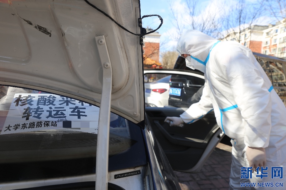 到達(dá)核酸采樣點(diǎn)后,籍東斌在工作人員取樣本間隙對(duì)車輛進(jìn)行消殺。核酸樣本轉(zhuǎn)運(yùn)存在著一定風(fēng)險(xiǎn)性,籍東斌說(shuō),只要按要求做好防護(hù),按規(guī)定完成工作,就沒(méi)什么問(wèn)題。新華網(wǎng)發(fā) 李倩攝