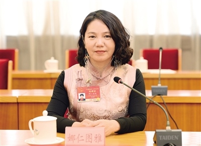 娜仁圖雅2018年當(dāng)選全國人大代表。她始終牢記總書記的殷殷囑托,心懷感恩之心踐行著一名人大代表的初心和使命:致力于關(guān)心關(guān)注生態(tài)環(huán)境保護、推動家庭教育健康發(fā)展、推廣使用國家通用語言文字……