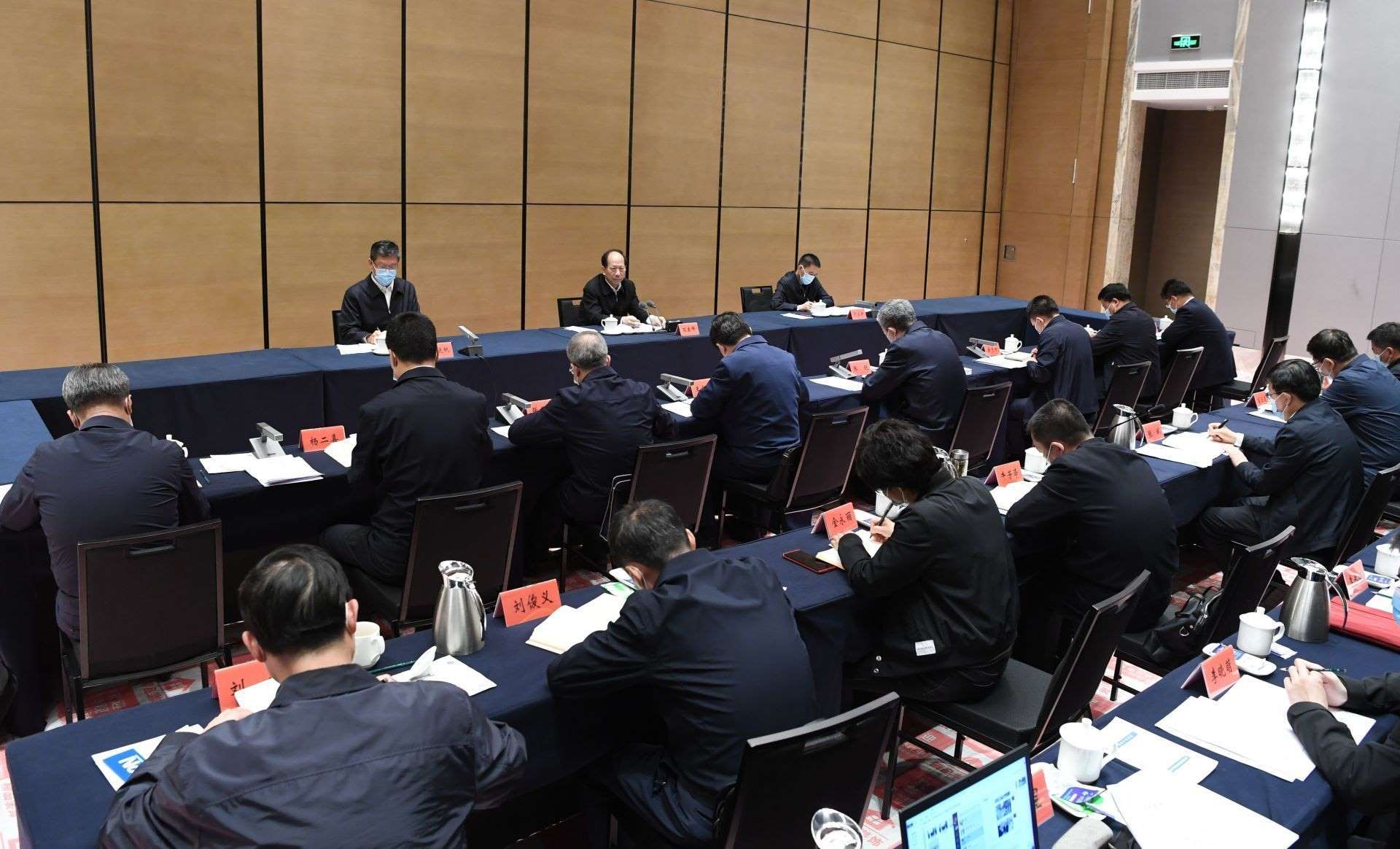 4月26日,自治區(qū)黨委書記、人大常委會(huì)主任石泰峰在包頭市疫情防控指揮部主持召開(kāi)座談會(huì),聽(tīng)取包頭市疫情防控工作匯報(bào)并講話。內(nèi)蒙古日?qǐng)?bào)社融媒體記者 袁永紅攝