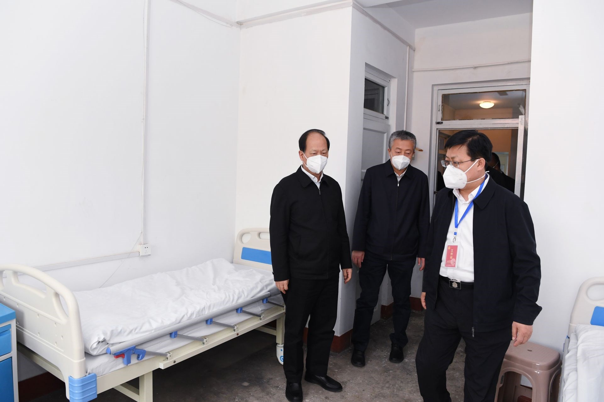4月26日,自治區(qū)黨委書記、人大常委會(huì)主任石泰峰來(lái)到包頭市方艙醫(yī)院調(diào)研。內(nèi)蒙古日?qǐng)?bào)社融媒體記者 袁永紅攝