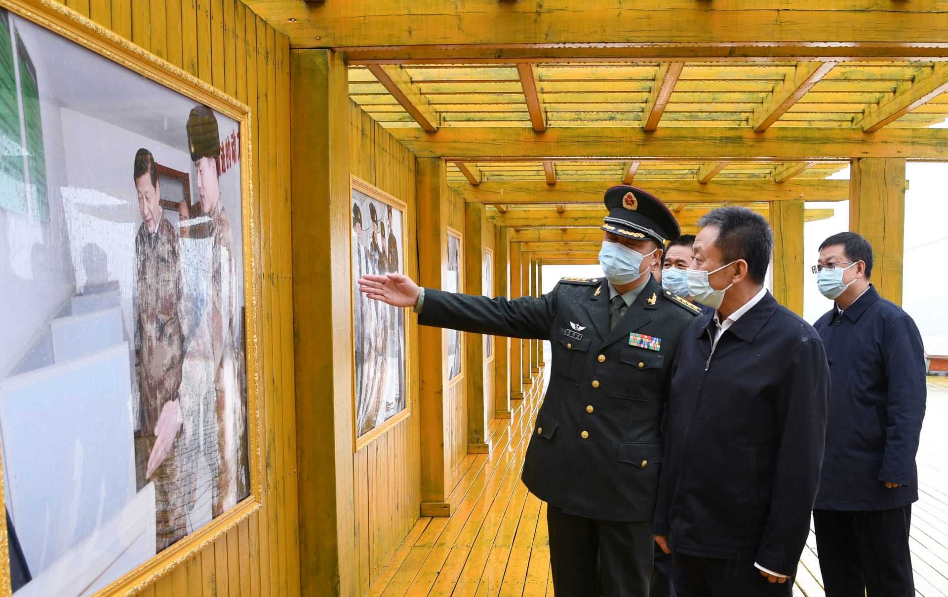 5月5日,自治區(qū)黨委書記孫紹騁參觀習(xí)近平總書記慰問(wèn)情景再現(xiàn)長(zhǎng)廊。記者袁永紅攝