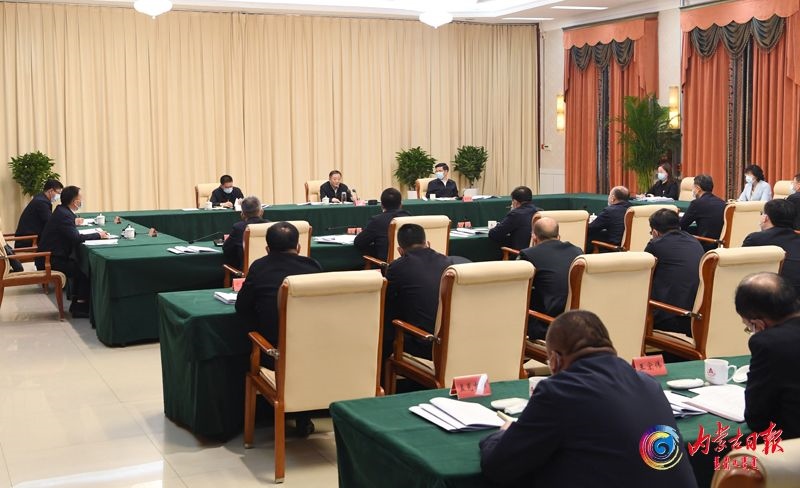 5月18日,自治區(qū)黨委書記孫紹騁在阿拉善盟主持召開座談會,聽取阿拉善盟和全區(qū)重點(diǎn)項目建設(shè)及新能源規(guī)劃發(fā)展工作匯報。記者袁永紅攝